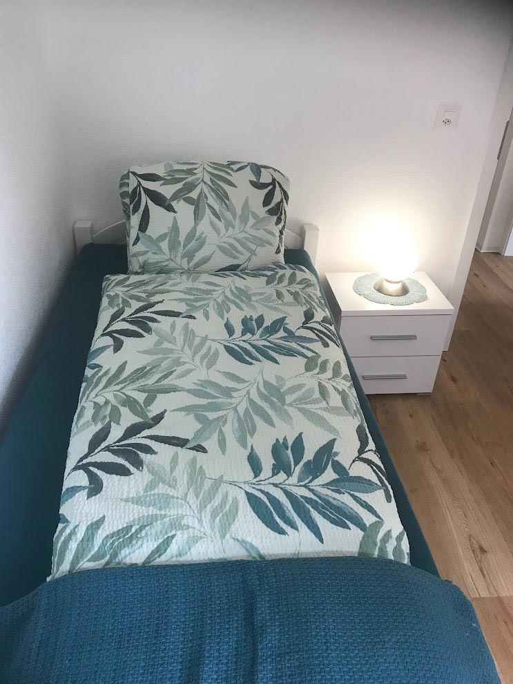 Die 4 Zimmer Wohnung ist im 1. Stock, welcher 2023 total renoviert wurde. Südlage mit grosser Terrasse. 2 Doppelschlafzimmer , 1Einzelzimmer, Dusche/WC und Küche – Wohnraum. Die Küche ist mit 4 Glaskeramikplatten, Backofen, Geschirrspühler ausgestattet. SAT-TV  WLAN vorhanden. Kinderbett und Kinderstuhl zusätzlich erhältlich. Spiel-/Liegewiese zur mitbenützung. Haustiere nicht erlaubt.