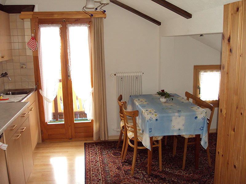 2.5-Zimmer-Dachwohnung für 4 Personen, zweckmässig möbiliert. Wohnzimmer mit Polstergruppe, SAT-TV. Abgeschlossene Küche mit Esstisch, elektrischer Herd, Backofen, Kühlschrank. 2 Schlafzimmer mit 4 Betten. Im autofreien Teil von Grächen. Spiel- und Liegewiese vor dem Haus.